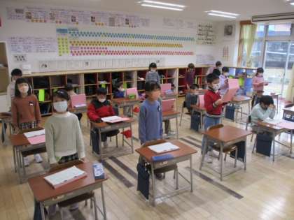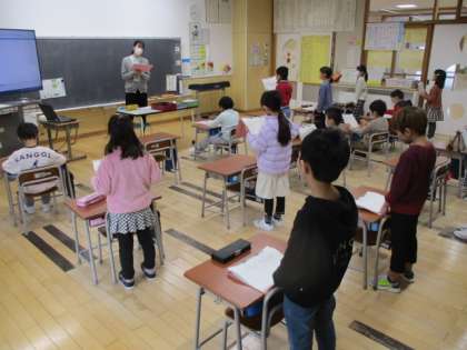 朝の時間に1年生教室をのぞくと、昭和世代にはお馴染みの「上を向いて歩こう」の練習中でした。まだまだ歌には慣れていない段階ですが、おじいちゃんおばあちゃん世代と同じ歌を歌えるようになるのは、とっても素敵なことですね。