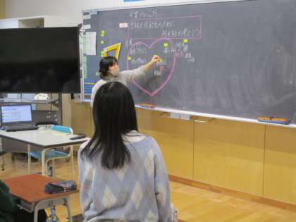 6時間目の6年生は、「卒業プロジェクト〜学校や在校生のために何をするか考えよう〜」というテーマで話し合いをしました。みんな積極的に発言していました。