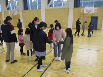 まずは「歌遊び」のコーナーです。今朝は、「しろくまのジェンカ」からの「かごめかごめ」と、久しぶりの「3時のおやつ」をしました。