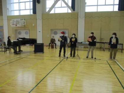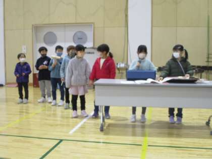「上滝ショータイム」のコーナーに入りましたが、今朝は3組もの出演がありました。1組目は1年生の演奏、2組目は6年生の演奏、そして3組目は教員選抜チームの合唱です。動画もありますので、見てください。