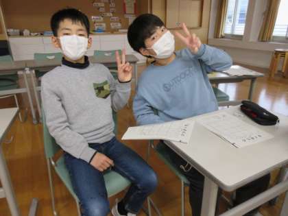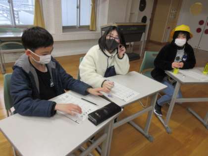 先生の発音(数・動物)を聞いて、ビンゴゲームをしていました。