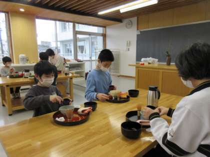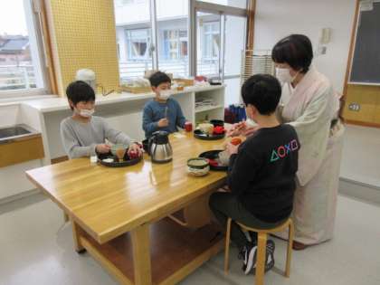 飲み方の作法を教えていただいているところです。難しそうですが、がんばっていました。