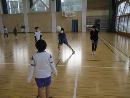 4年生も3年生と混じってパスの練習をします。4年生になると、写真で見てもなかなかいいフォームでパスができているように思います。
