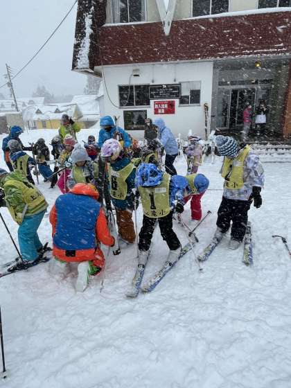 早い班は午後の練習が始まりました。雪は降り続いています。