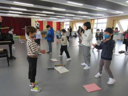 今日の1・5年生の合同音楽では、「和いわいミュージックタイム」で行う曲「聖者の行進」、「上を向いて歩こう」、「Dream & Dream」を練習していました。