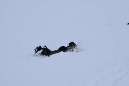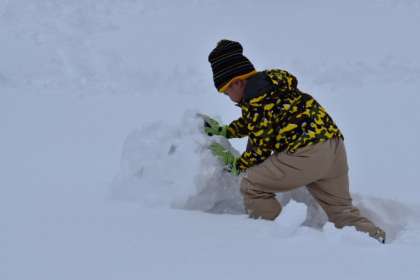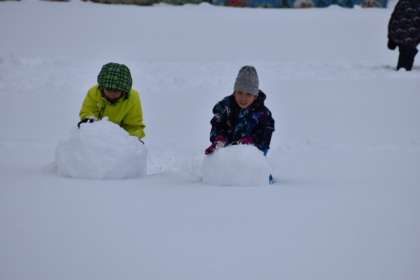 雪も少し溶けてくっつきやすくなったので、大きな雪玉を作ります。