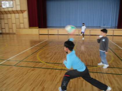 今日の給食後・チャレンジタイムの一コマです。体育館で野球やドッジボールを楽しんでいました。