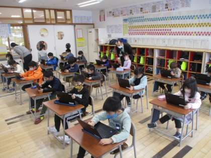 5年生の3時間目は、情報の先生に来てもらってプレゼンテーションソフトの使い方について習いました。さすがに5年生ともなると、動画を取り込む方法も習っていたようです。やり方が分かると、どんどん上達していくと思います。