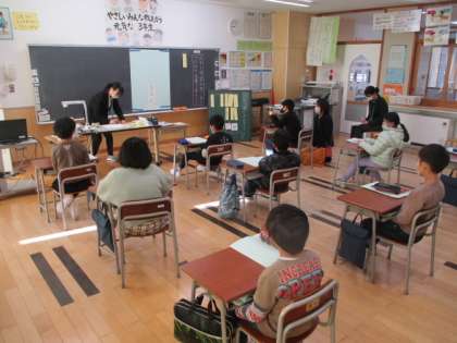 1時間目の3年生は、国語の研究授業です。下学年の先生が授業観察をしたり、授業記録を取ったりしています。