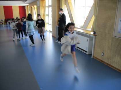 今日は火曜なので、給食後にはチャレンジタイムがありました。みんなの広場では、1年生から6年生が一緒に、こおり鬼を楽しんでいました。鬼の人数と逃げる人数のバランスがとれていると、楽しみも倍増するようです。