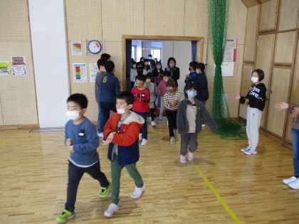 まずは入場から。おなじみの「上だきっこソング」に合わせての入場です。