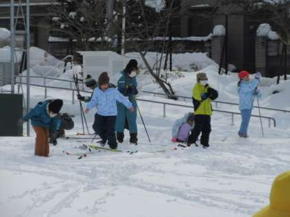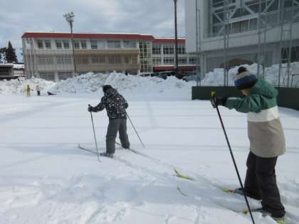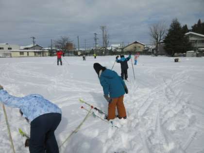 2年生は今日の2時間目に、1年生に先だってグラウンドでクロスカントリースキーに挑戦しました。さすが2年生だけあって手早く準備を進め、白銀の大地に漕ぎ出していきました。