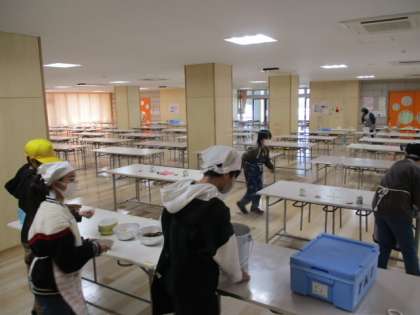 今日は中学校説明会の日なので、6年生だけが早く下校します。そのため給食も6年生だけで4時間目に食べました。