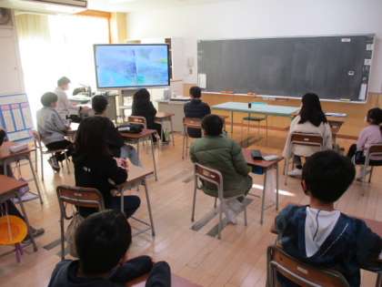 4年生教室では、大阪弁を使う変わった宇宙人が地球征服にやって来たのを、「マメ」を使って撃退するお話でした。このお話は「オニたいじ」という本の4番目だそうです。