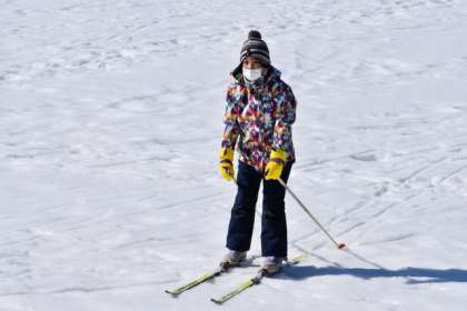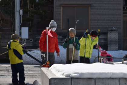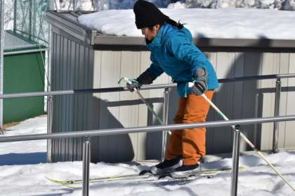 3時間目には、2年生がグラウンドに出て雪を楽しみました。2年生も雪遊びとクロスカントリースキーは選べたのですが、ほとんどの児童はクロスカントリースキーに取り組んだようです。グラウンドへ降りるスロープは、小さなスキー場になっていました。