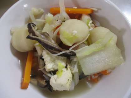 今日の給食献立は、ご飯、牛乳、ちゃんこ鍋、イワシのピリ辛煮、いり大豆和え、いよかん でした。