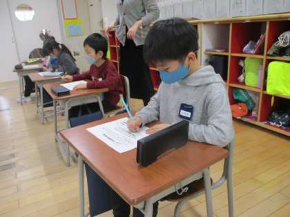 1年生は5時間目を使って、地域のお年寄りへ配るお手紙を書きました。これは地区の社会福祉協議会が配る「ひな祭り弁当」に付けるものです。心を込めて、丁寧な字で書きました。受け取った方の気持ちが温かくなると素敵です。