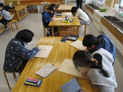 4年生の6時間目は図画工作の授業でした。この授業では、動物を描いた版木を掘り始めました。まだ使い慣れていない彫刻刀に試行錯誤していても、安全には気を付けている姿を見て「ちゃんと先生の話を聞いているな」と安心しました。