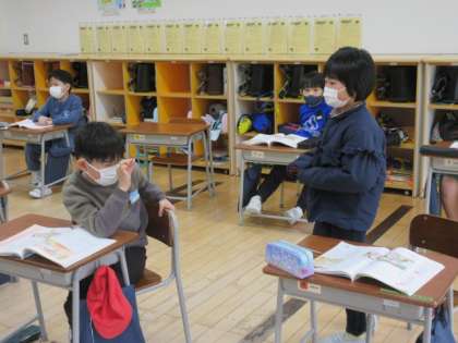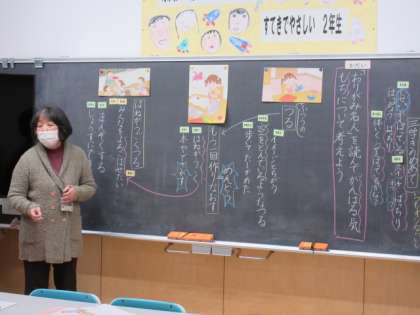 2年生の道徳科では、「がんばる気持ち」について考えていました。自分ががんばったときの気持ちを思い出して発表したり、つぶやいたりするなど、自分の心に向き合って考えていました。