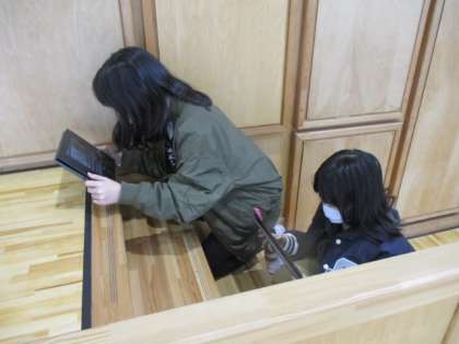 3時間目の5年生は家庭科の授業でした。今取り組んでいるのは「上滝小学校キレイキレイ大作戦」で、校舎の汚れを見つけてきれいにしていくプロジェクトです。今日はさっそくクロームブックを持って校内を巡り、これから取り組んでいく場所・内容を考えました。