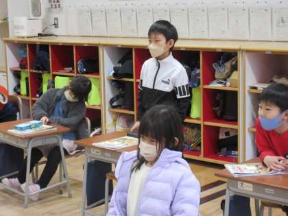 今日は、「ぎんのしずく」というお話を読んで、家族愛について考えました。お話には、3人のお母さんが出てきます。「どのお母さんが一番すてきなお母さんかな?」という問いかけに対し、子供たちが考えを発言していました。