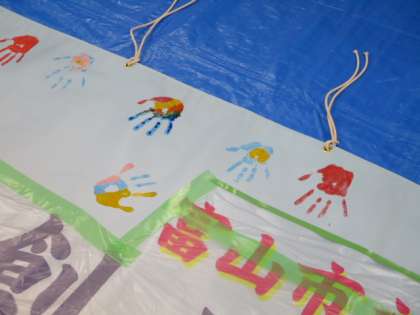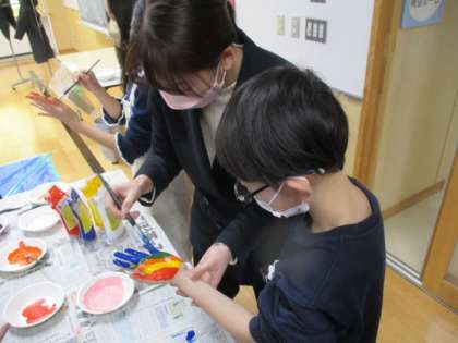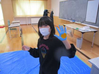 さすがの5年生! 手形にレインボーカラーなど工夫をしていきます。きっとこの先他の学年も、このアイディアを使っていくと思われます。