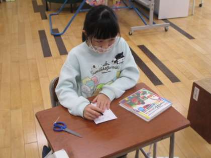 5時間目のひまわり級では、卒業式の飾りを作っていました。