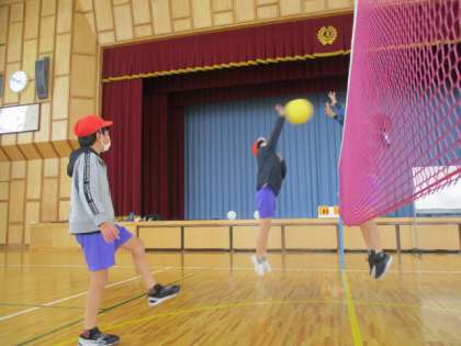 5時間目の3・4年生は合同体育で、キャッチバレーボールに取り組みました。以前からその様子はお伝えしていましたが、ここで改めてルールを説明します。