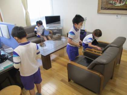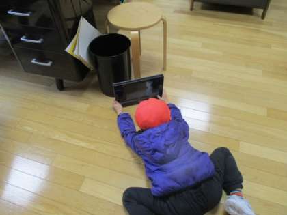 2時間目の1年生は、「すきまちゃんといろいろなすきまを見つけよう」という学習課題で、クロームブックを持って学校中のすき間を探しました。