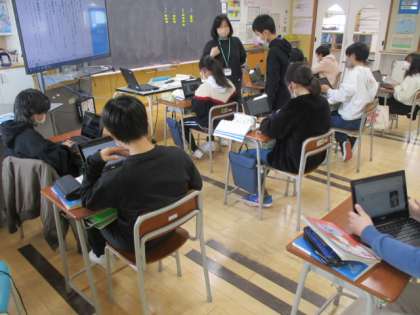 5時間目の6年生は、明後日の授業参観で行う「ビブリオバトル」に向け、プレゼンテーションの準備をしました。