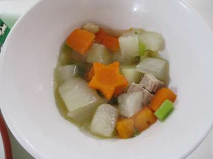 今日の給食で、何人かの人にラッキーな出来事がありました。それはメニューの「野菜のスープ煮」の中に「ラッキースター」が入っていたことです。何人かの人に聞いてみたところ、入っているのはまれでした。「ラッキースター」が入っていた人は、何かいいことがあるかもしれませんね。