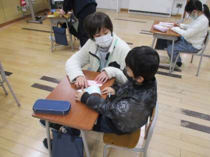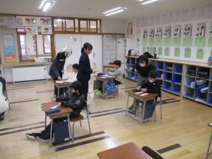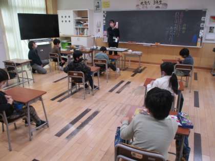 3年生の朝も、国語のモジュール学習でした。今日の内容は、主語、述語、修飾語を意識した文章作りでした。
