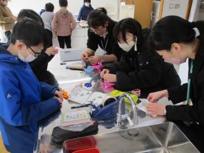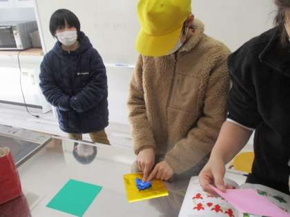 続いては、手芸・工作クラブです。今日は、折り紙で飾りを作っていました。