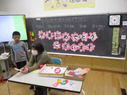 2年1組も飾りを作りました。これまでお世話になってきた6年生の卒業ですから、気持ちを込めて準備を進めたいと思います。