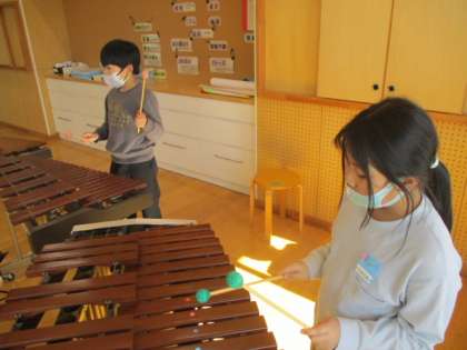 日頃は使わない楽器も使って、合奏をしていきます。