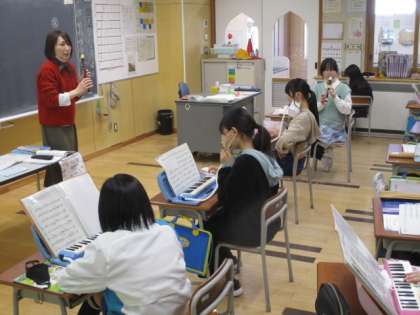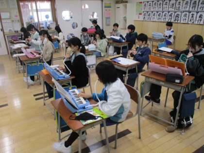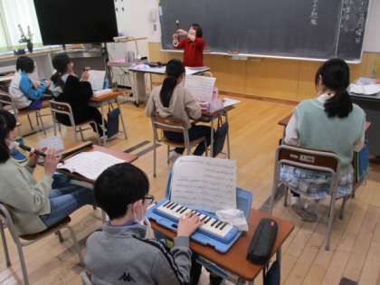 5年生も5時間目に合奏練習に取り組みました。使用した楽器は、鍵盤ハーモニカとリコーダーです。練習した曲は、いきものがかりの「ありがとう」です。