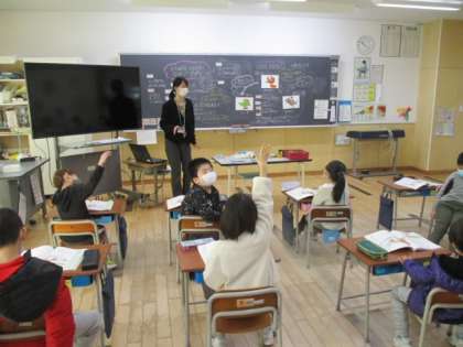2枚目の写真にあるように、1年生教室では発表をする人の方を向いて話を聞いていて、とっても素敵でした。