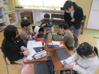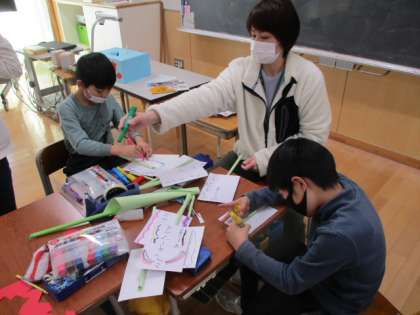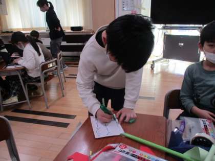3時間目の3年生は、卒業お祝い集会に向けて準備を進めていました。飾りものを作ったり、クロームブックで何かの計画を立てていました。