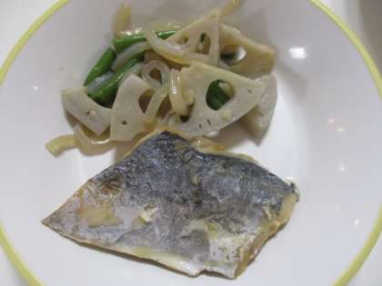 今日の給食献立は、ご飯、牛乳、サワラの西京焼き、レンコンのきんぴら、エビと豆腐のうま煮 でした。