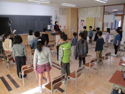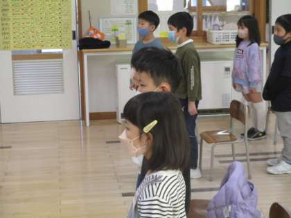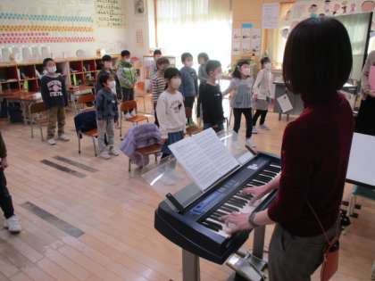 1時間目の1年生は音楽の授業で、「カントリーロード」の最終練習をしました。去年の就学時健診からお世話になった6年生のお兄さん・お姉さんたちですから、心を込めた歌で門出を祝ってあげたいですね。