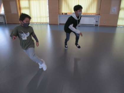 体育館で卒業式の練習をしているちょうどその頃、みんなの広場では「こおり鬼」を楽しんでいる姿がありました。