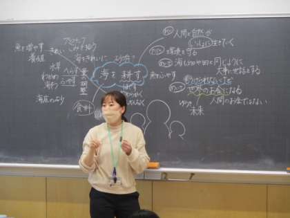 6時間目の5年生は道徳の授業です。今日は教科書の「海を耕す人たち」という内容を学習しました。「海を耕す」とは理解が難しい言葉ですが、水産資源の減少に立ち向かう人たちの行動をそう表現しているそうです。