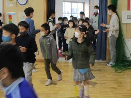 5年生に進行をバタンタッチした6年生にとっては、「上滝っこソング」の合わせて入退場する最後の機会です。