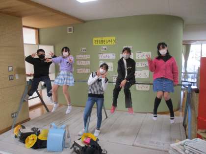 クラブまでの時間、鉄棒の上で楽しく待っている運動クラブのみんなです。