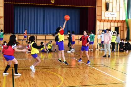 ゲームは、前半・後半それぞれ3分間で行います。ディフェンス側がボールをうばうと、センターサークルから攻守交代してゲーム再開です。