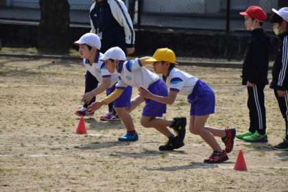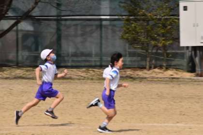 1年生の3時間目は、2年生の合同体育でした。今日も50m走に取り組みます。