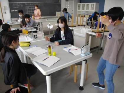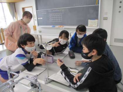 6時間目の5年生は、理科室でふりこの実験をしました。