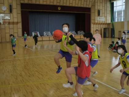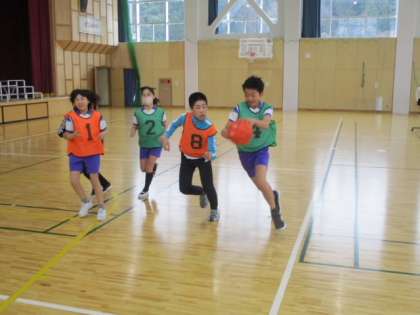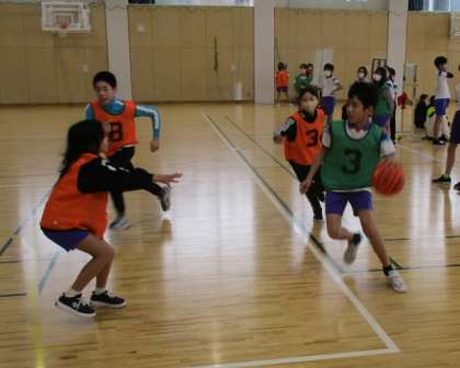 6年生は、ドリブルやシュートに勢いがあります。ディフェンスの開いているところがあると、素早く攻撃をしかけます。