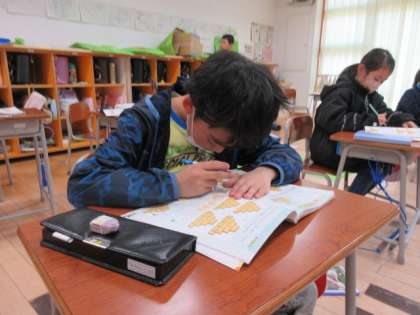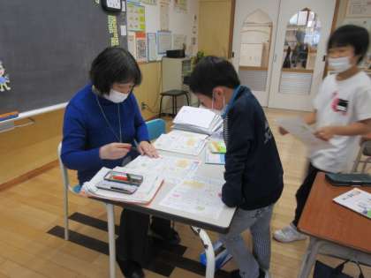 5時間目、2年生は、計算ピラミッドやプリント直しをがんばっていました。2年生のまとめをしっかりして、進級します。