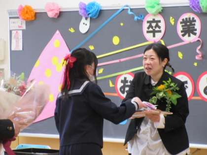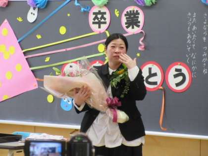 6年生最後の学活です。担任の先生に感謝を伝えます。結構涙もろかった担任の先生。